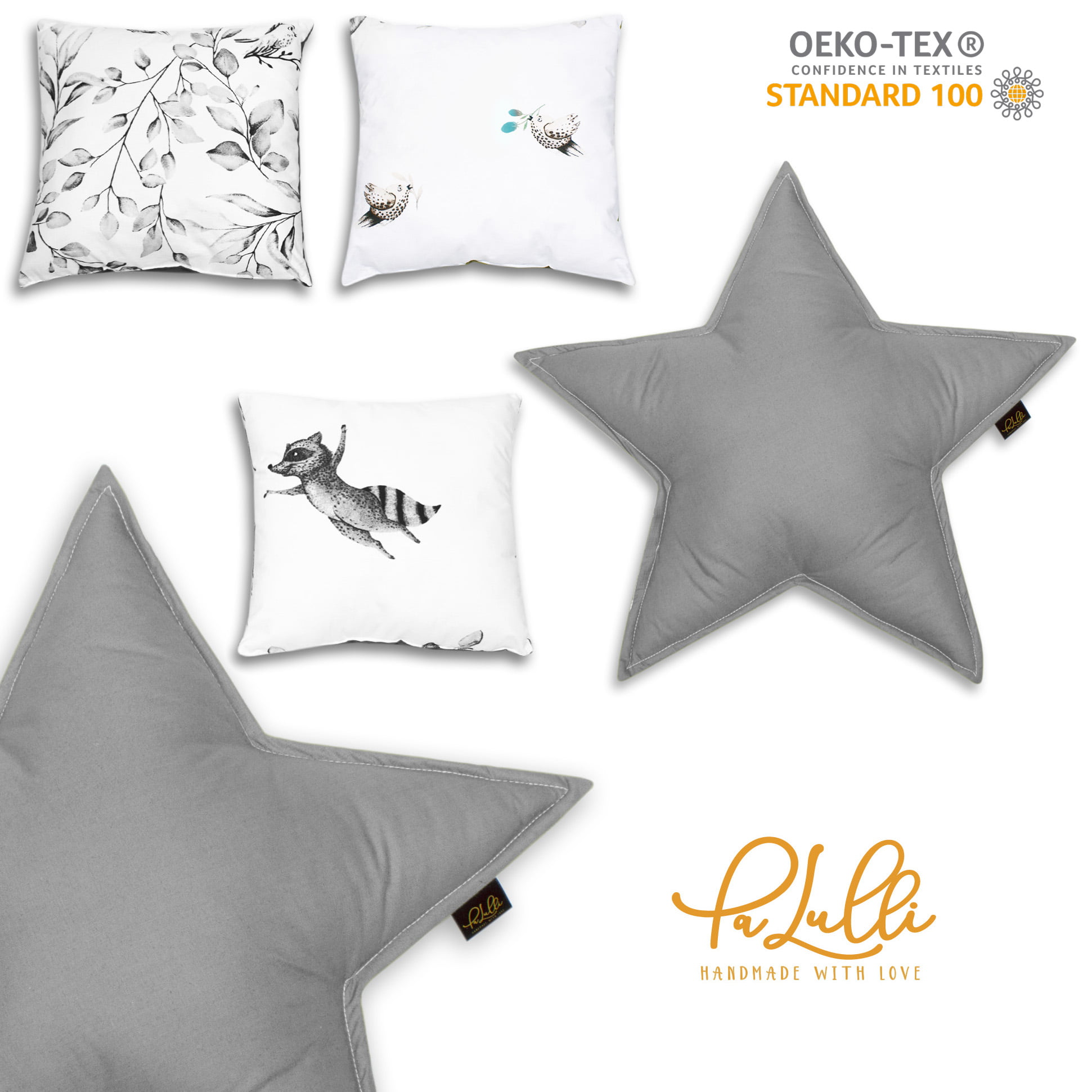- Wszystkie tkaniny oraz antyalergiczna kulka silikonowa, którą zastosowaliśmy do wypełnienia poduszki, posiadają certyfikat: STANDARD 100 by OEKO-TEX®
