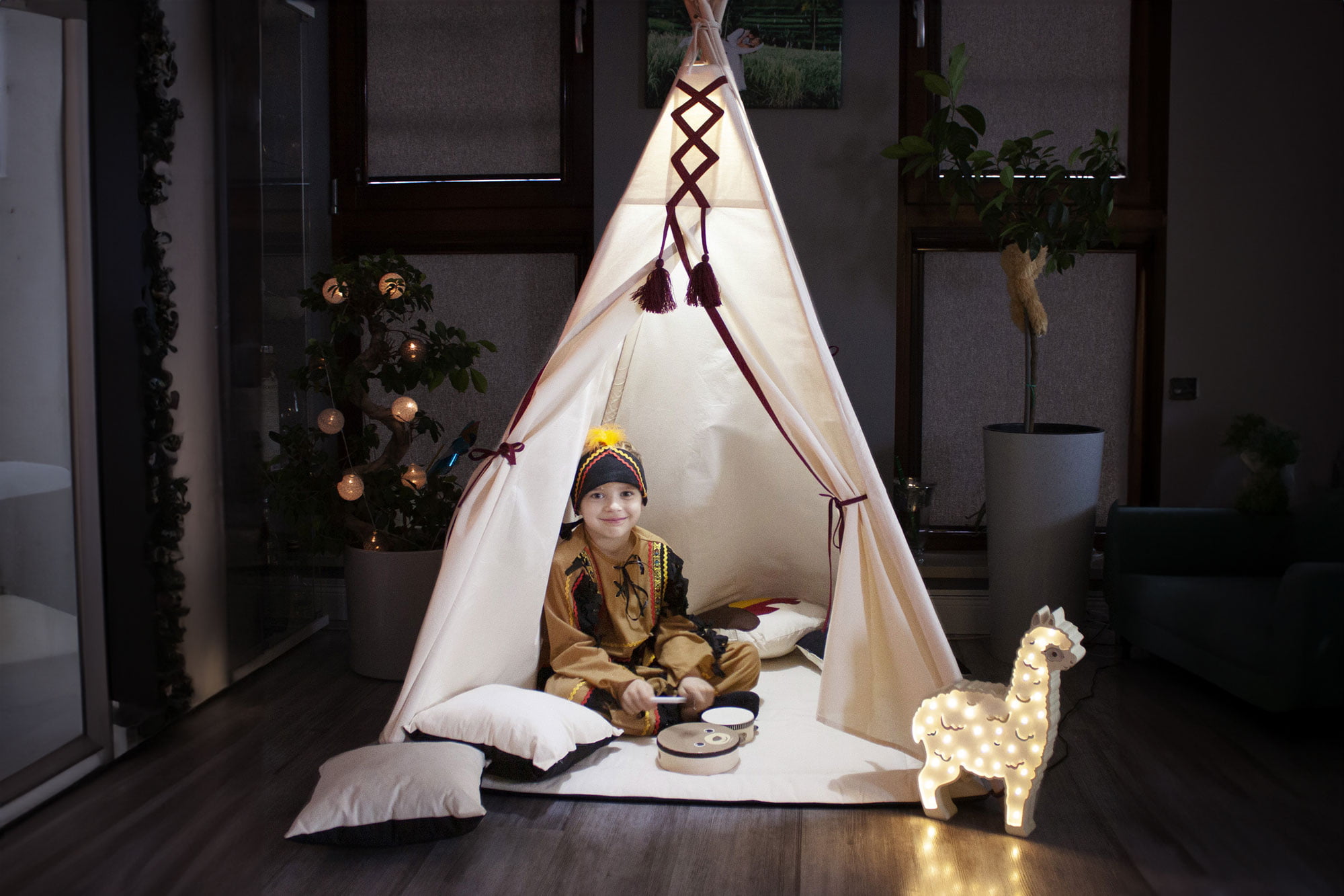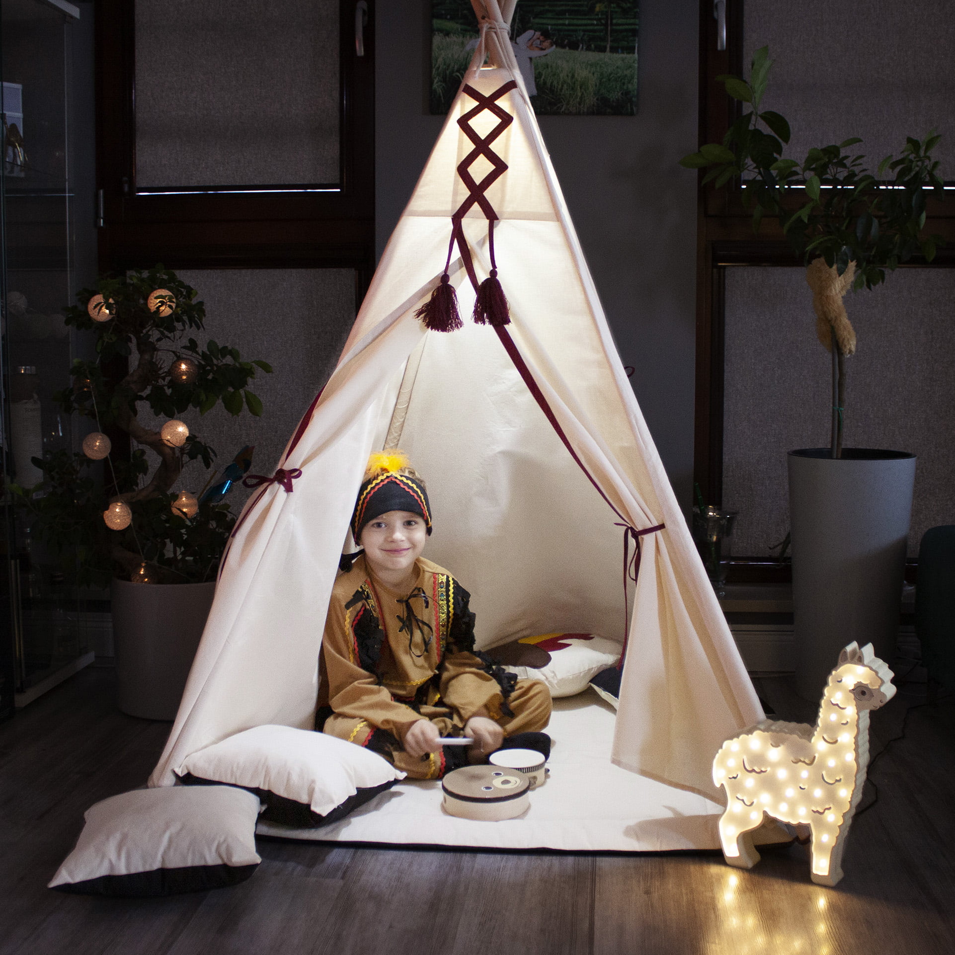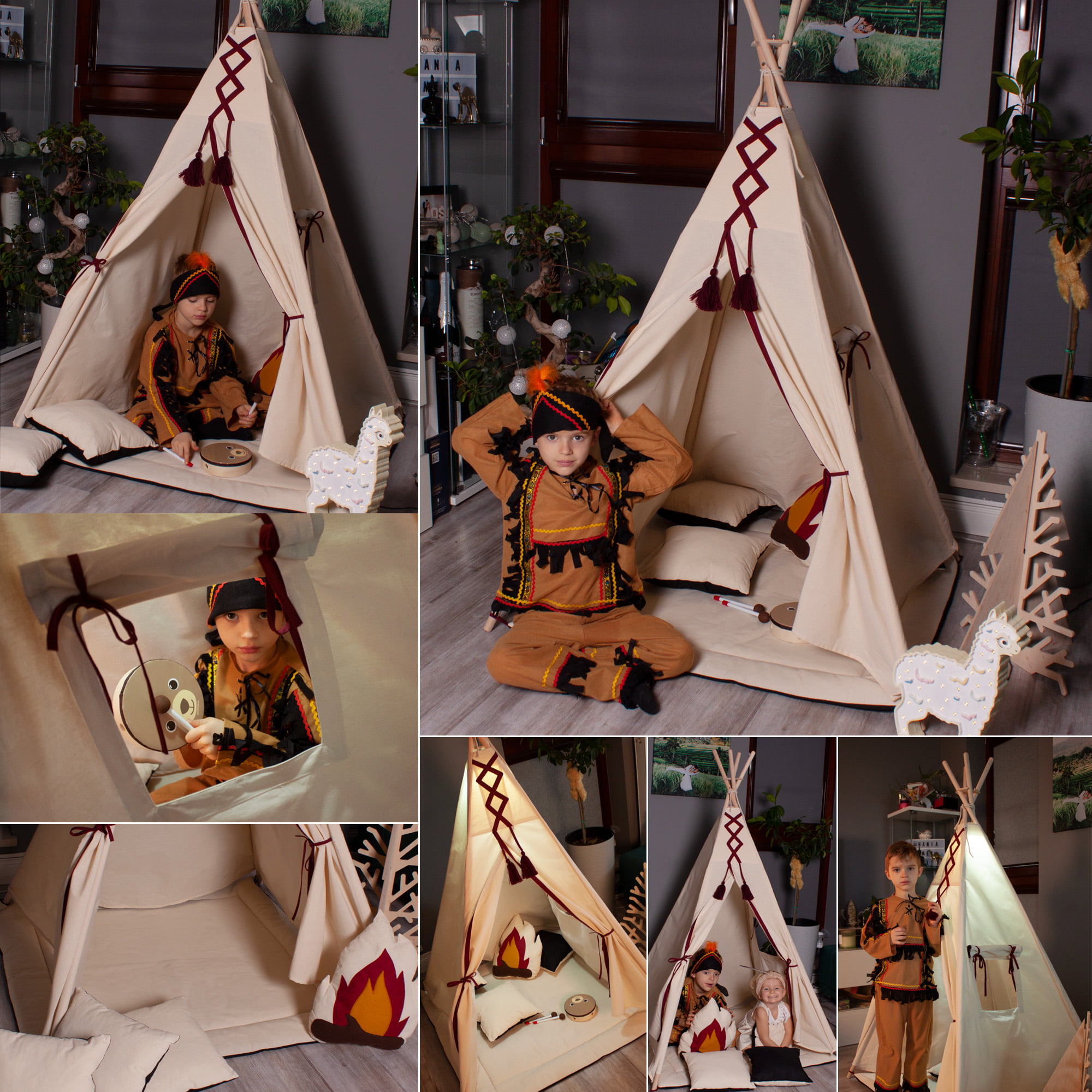 Ręcznie szyty, bawełniany namiot TIPI pobudzi wyobraźnię twojego dziecka i zainspiruje go do aktywnej zabawy w Indianina czy nocowanie w namiocie bez wychodzenia z domu. Dzięki produkcji z naturalnychmateriałów jest w pełni bezpieczny i nadaje się do użytkowania przez nawet kilkumiesięczne maluchy.