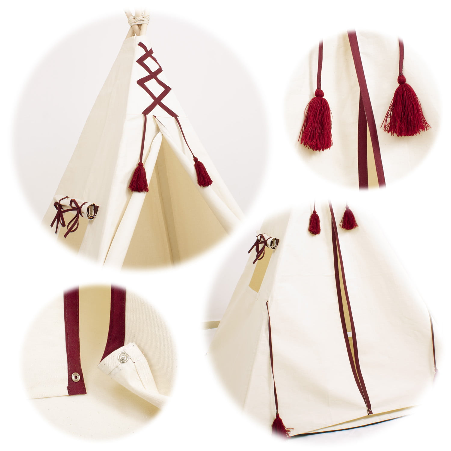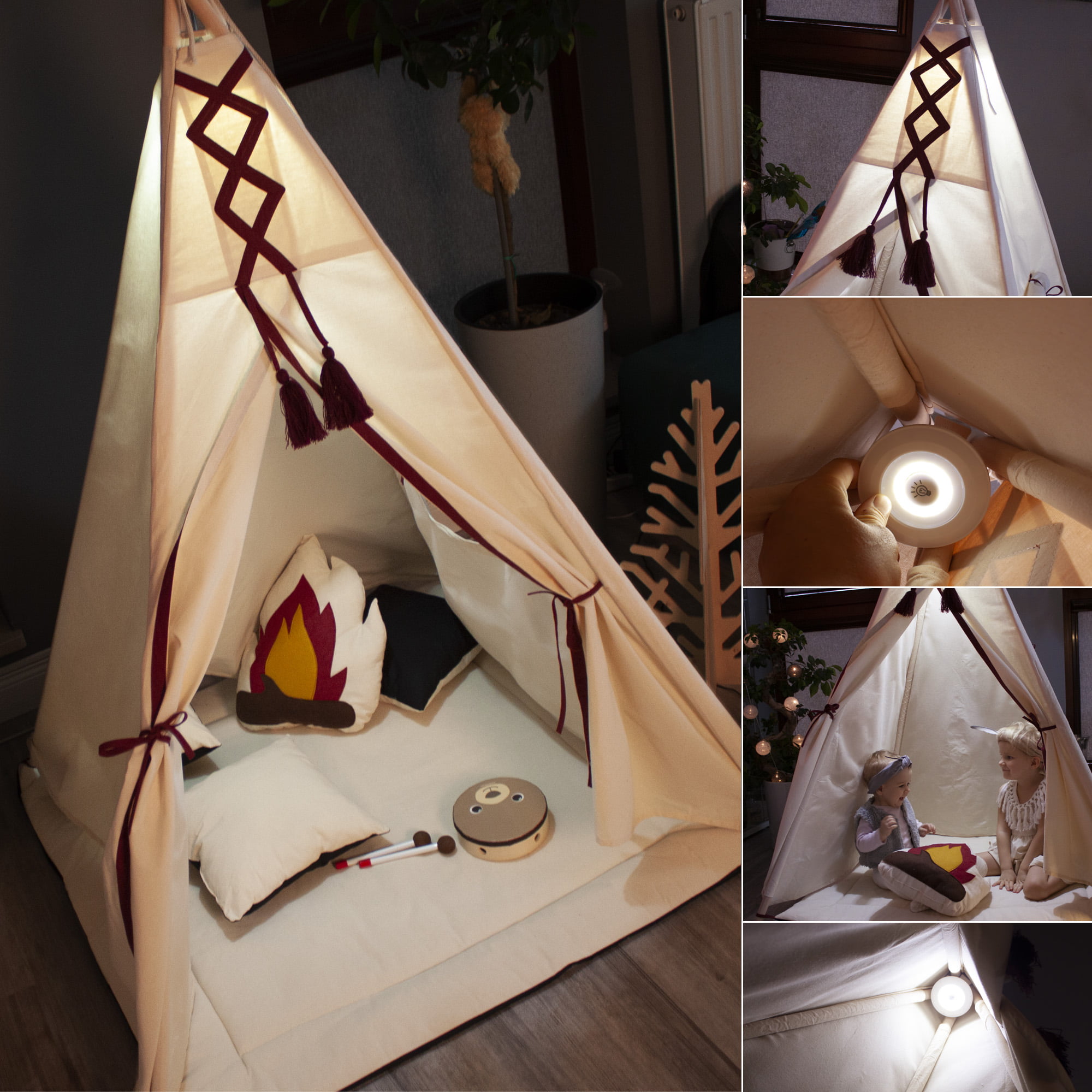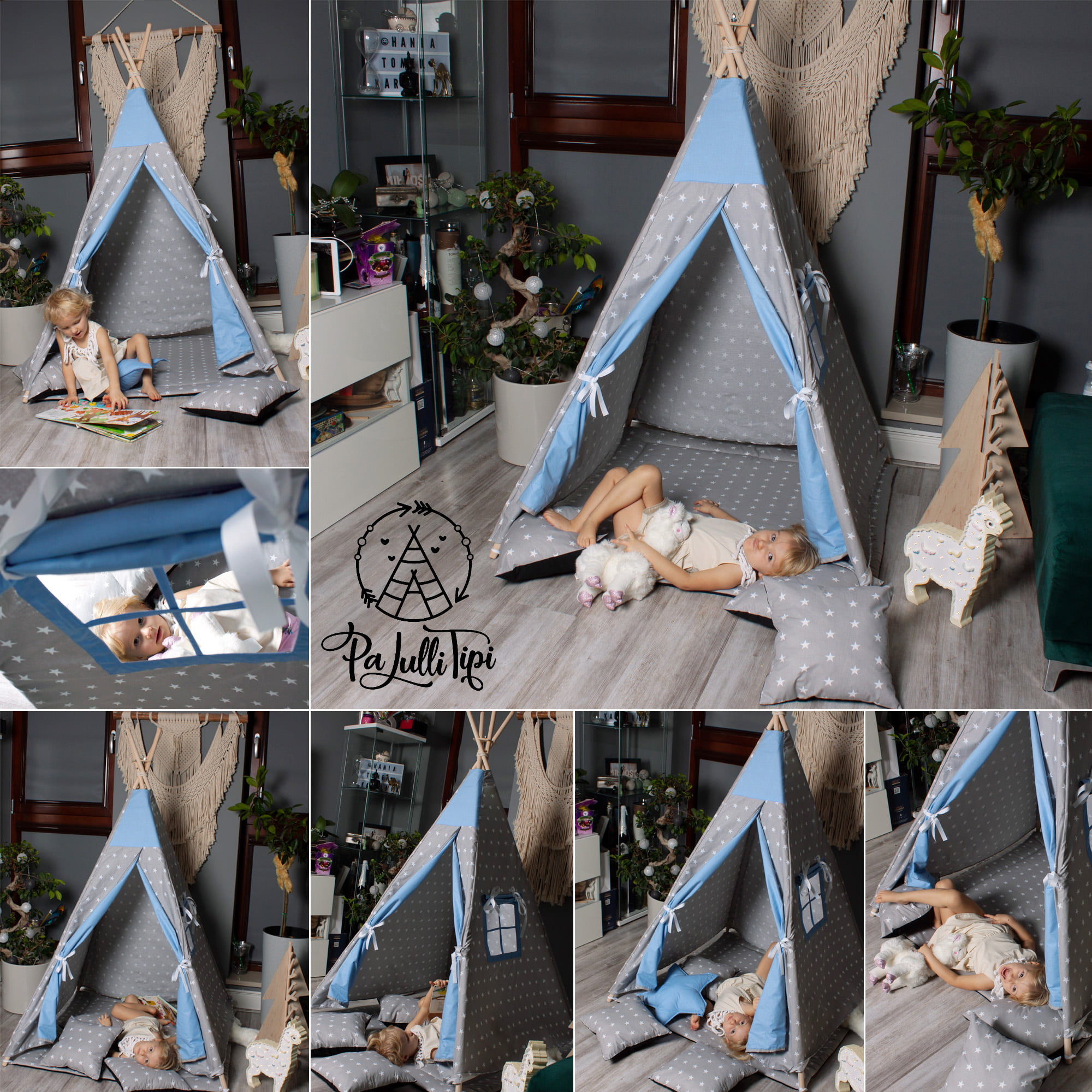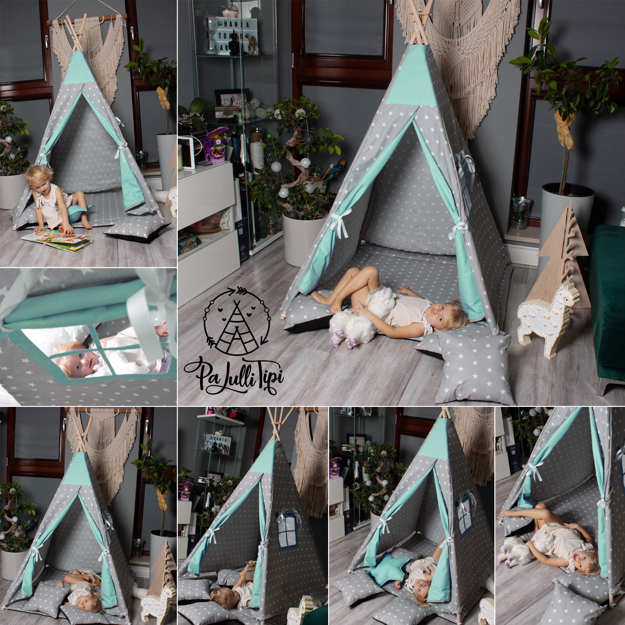 Ręcznie szyty, bawełniany namiot TIPI pobudzi wyobraźnię twojego dziecka i zainspiruje go do aktywnej zabawy w Indianina czy nocowanie w namiocie bez wychodzenia z domu. Dzięki produkcji z naturalnychmateriałów jest w pełni bezpieczny i nadaje się do użytkowania przez nawet kilkumiesięczne maluchy.