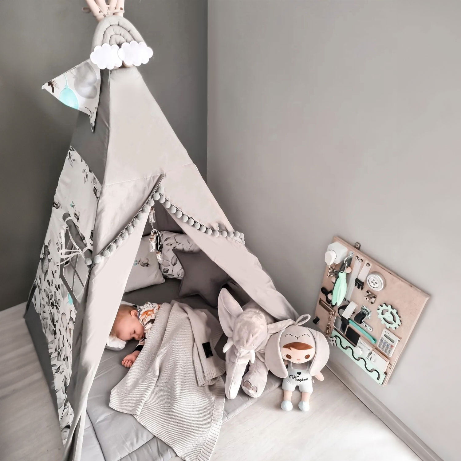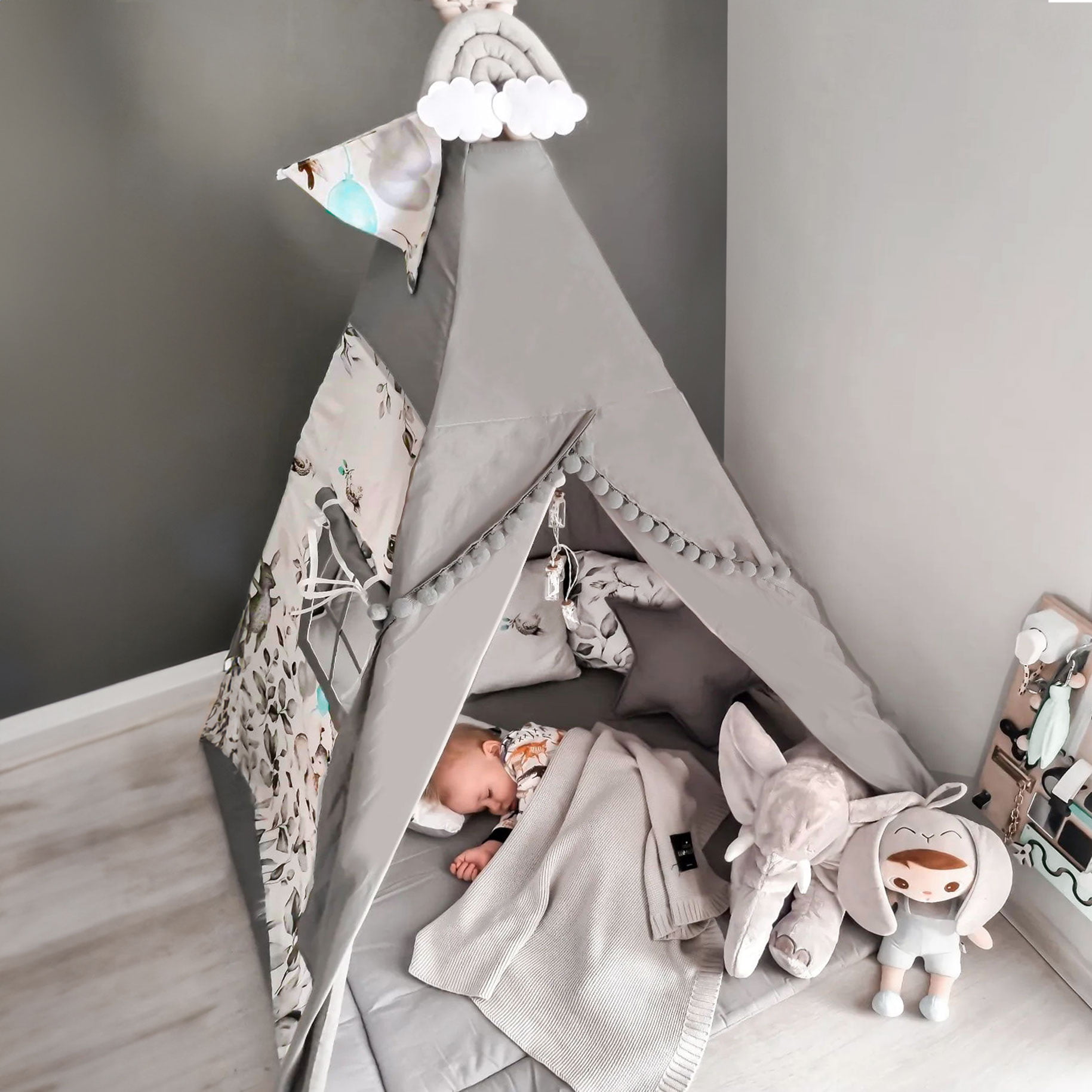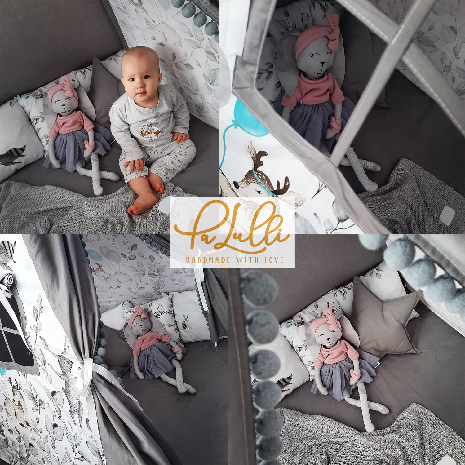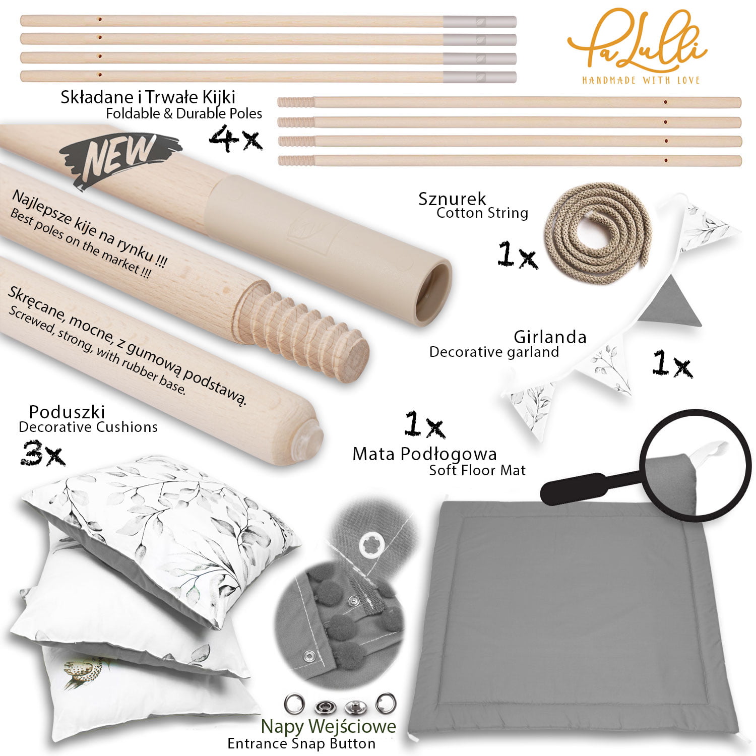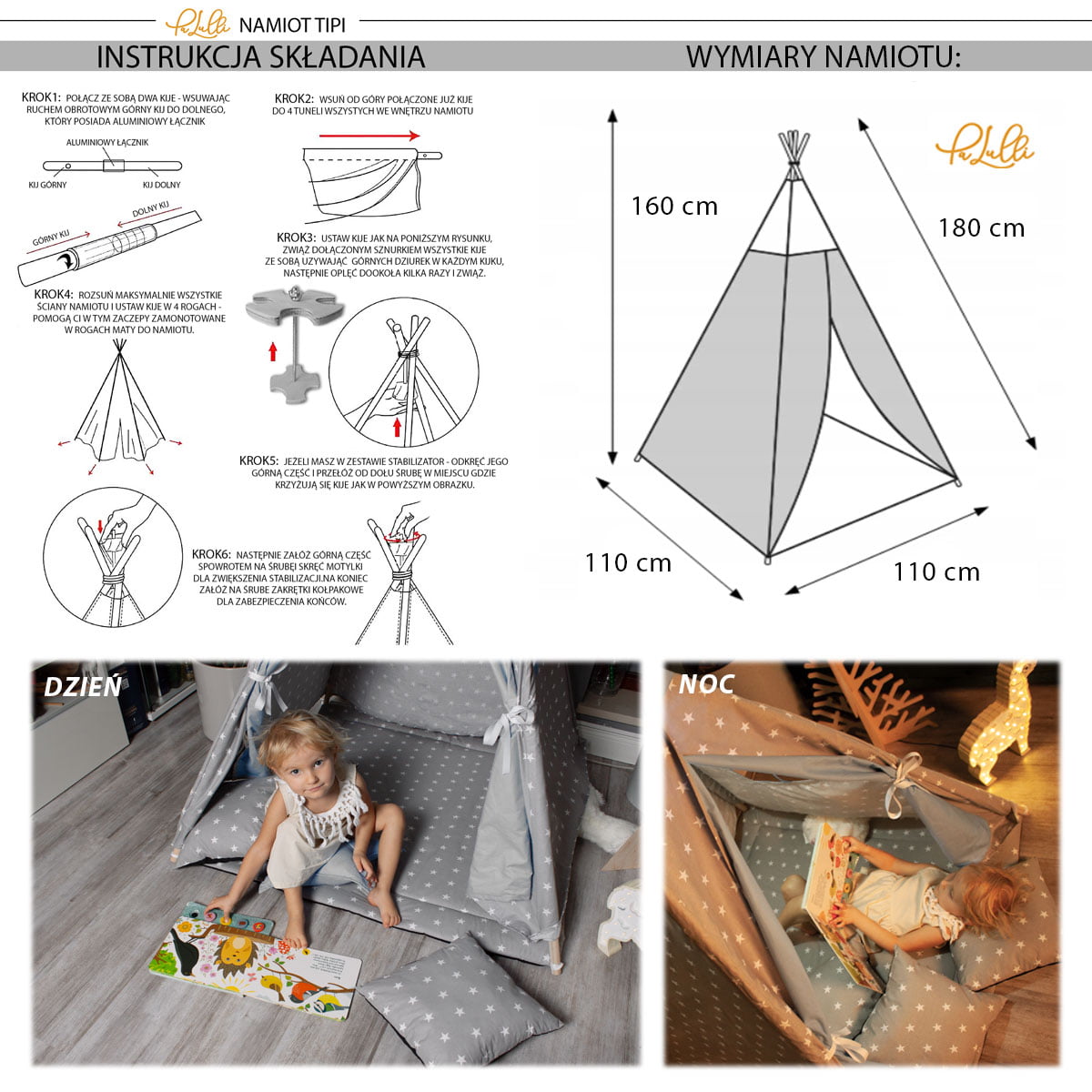 Namiot dla dzieci TIPI – Zestaw Duży 7 elementowy – Szary Tipi z Jelonkiem