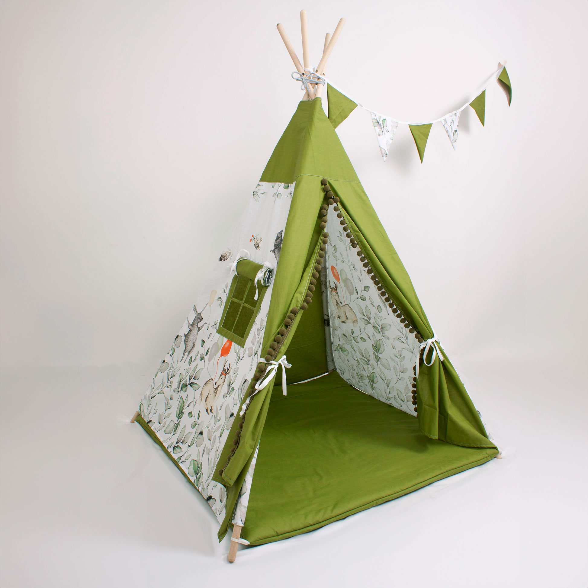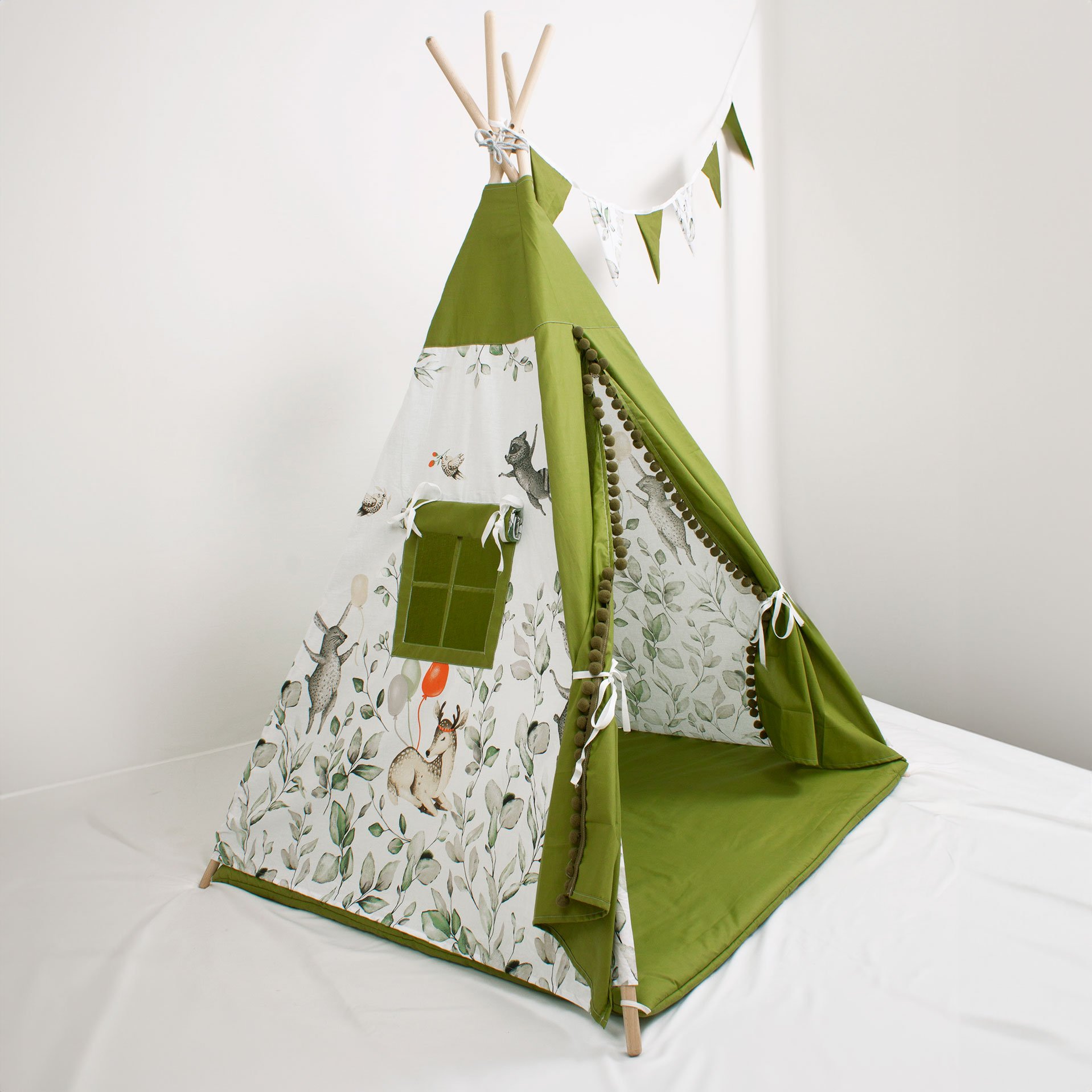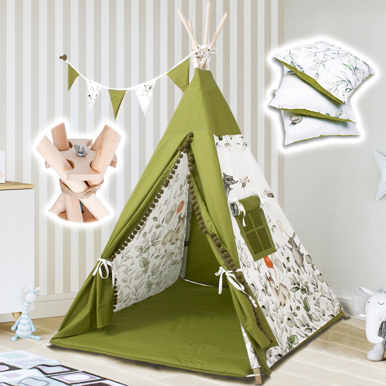 Namiot dla dzieci TIPI – Zestaw 5 elementowy – Zielony polana z kulkami