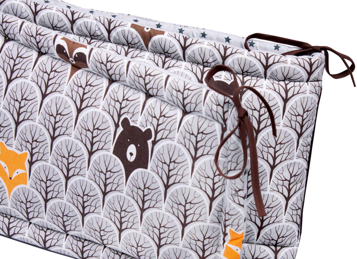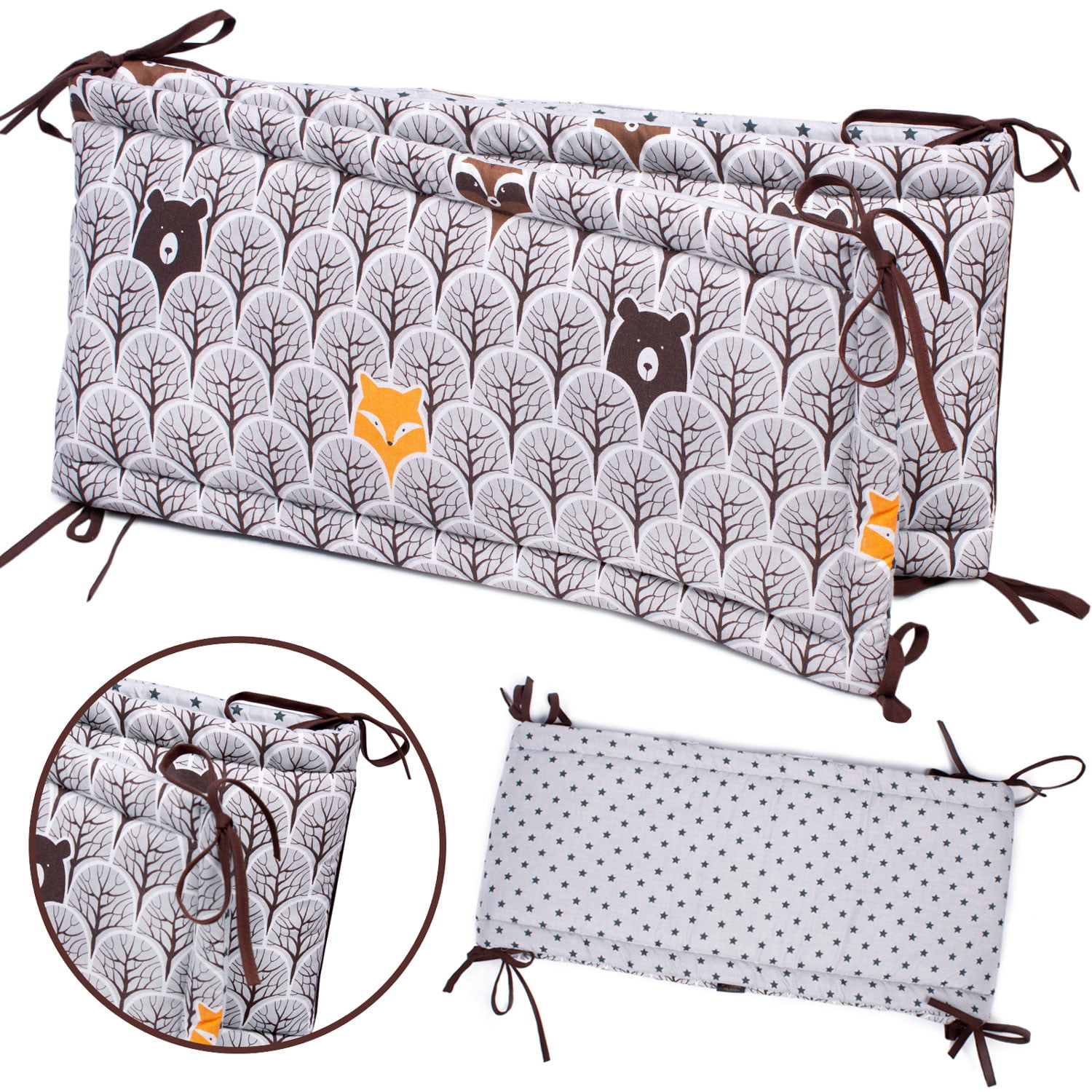 - 8 bawełnianych troczków (po ok. 25 cm) pozwala na estetyczne, bezpieczne i stabilne przymocowanie ochraniacza do łóżeczka