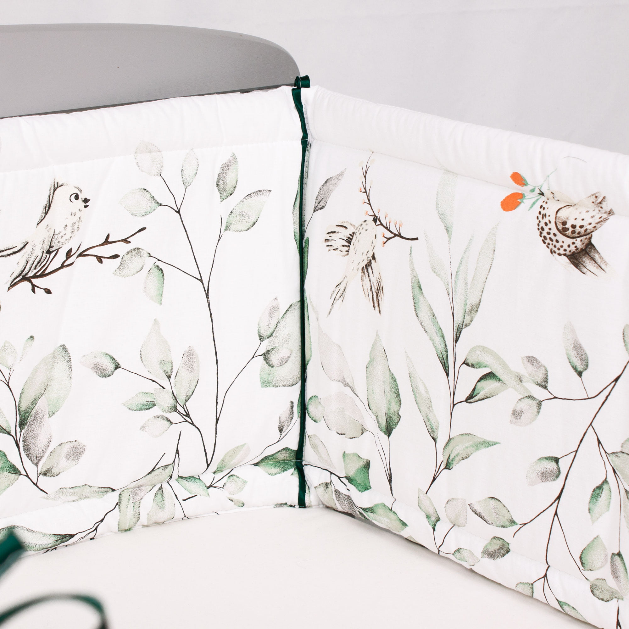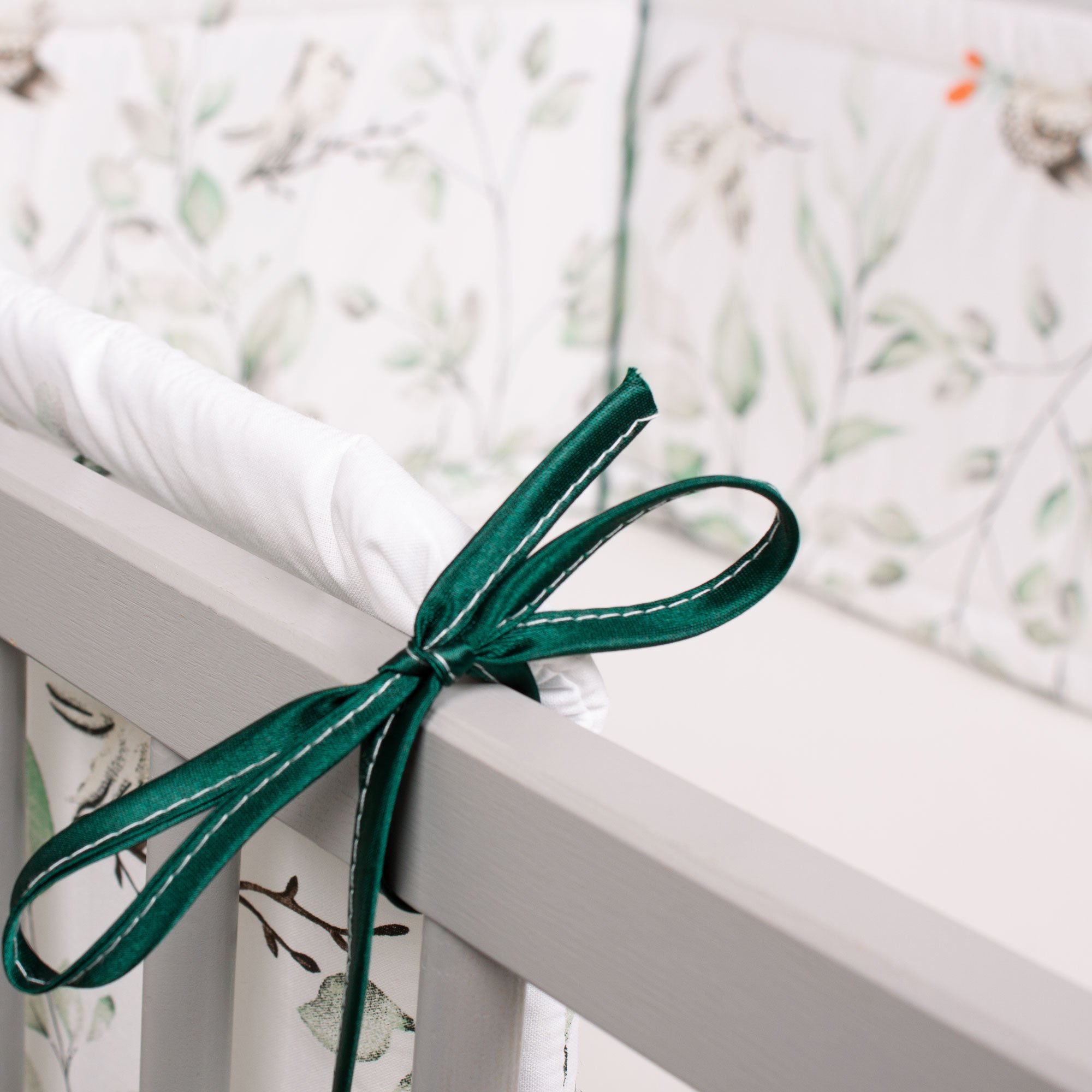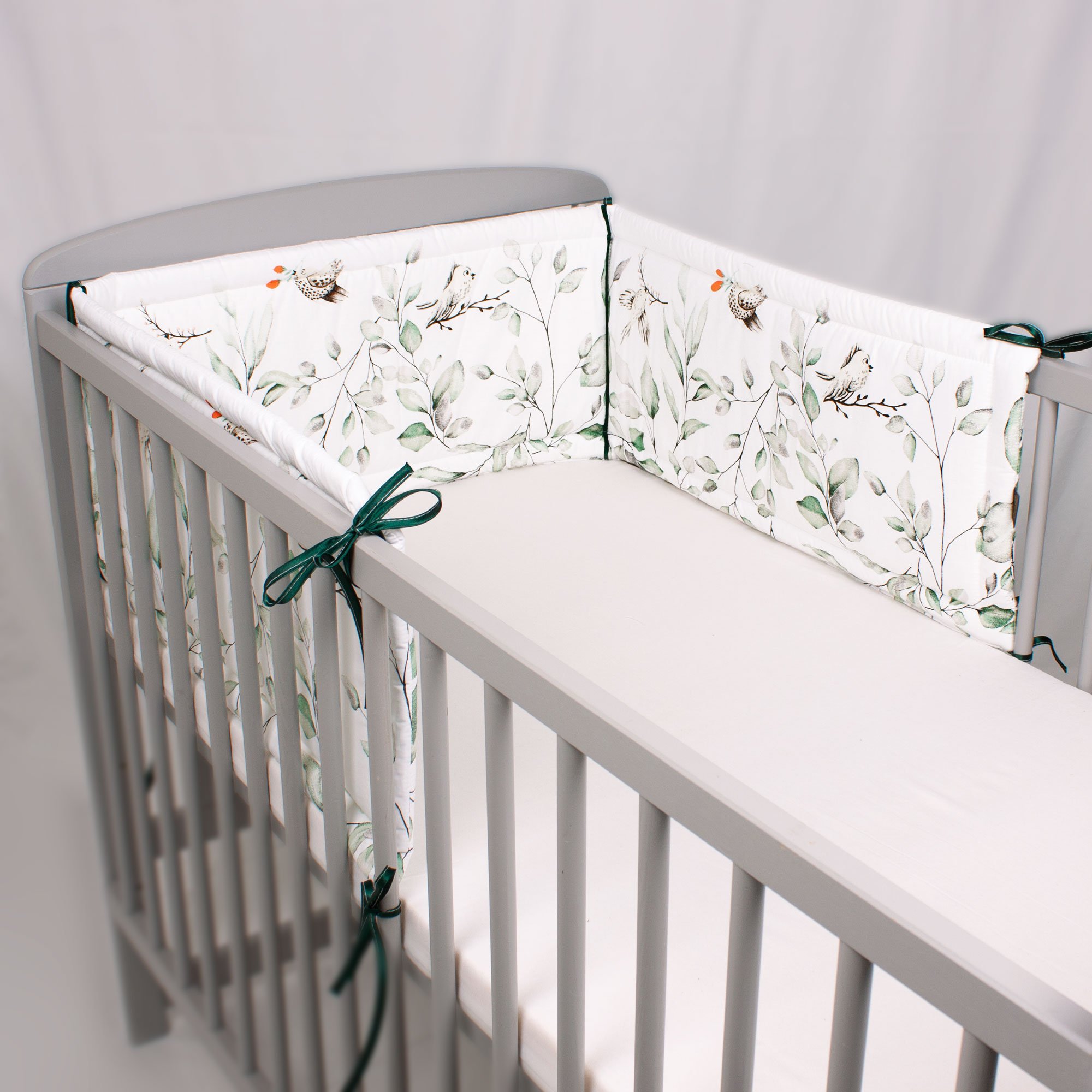- 8 bawełnianych troczków (po ok. 25 cm) pozwala na estetyczne, bezpieczne i stabilne przymocowanie ochraniacza do łóżeczka