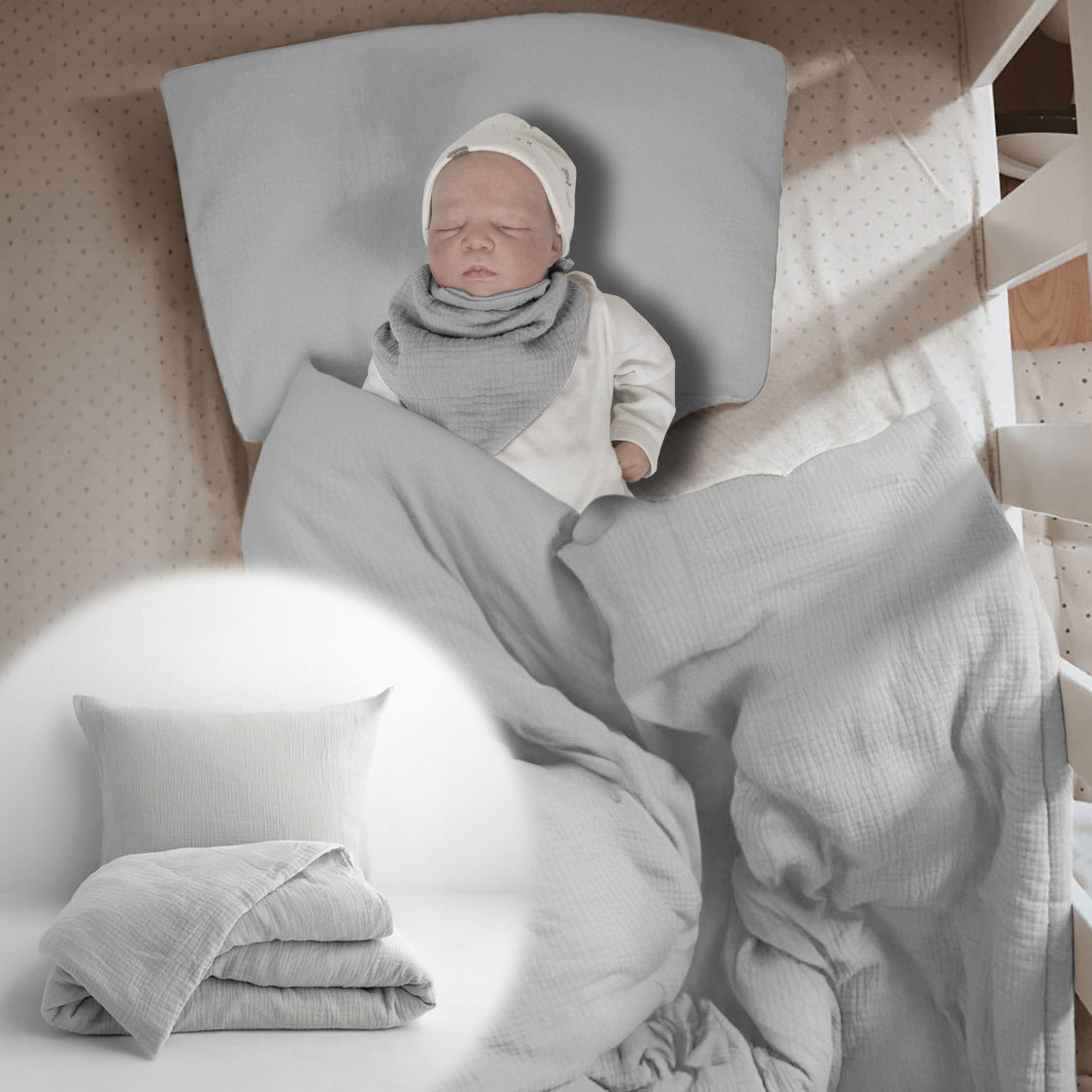 Pierwsze tygodnie życia to czas, w którym delikatna skóra maluszka wymaga szczególnej troski. Dlatego stworzyliśmy PaLulli® PREMIUM – komplet pościeli z certyfikowanej 100% bawełny muślinowej, który idealnie dopasowuje się do potrzeb noworodków i wcześniaków. To zestaw zaprojektowany z myślą o wózkach, koszach Mojżesza, gondolach i kołyskach, który zapewnia otulenie, bezpieczeństwo i komfortowy sen w każdej sytuacji – zarówno w domu, jak i podczas spacerów czy drzemek w podróży.