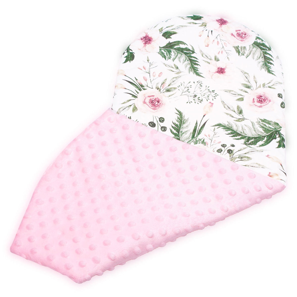 - Rewersy naszego zestawu elementowego to bardzo miły i przyjemny w dotyku 100% poliester MINKY, którego struktura wypustek zwiększa doznania sensoryczne u niemowląt.